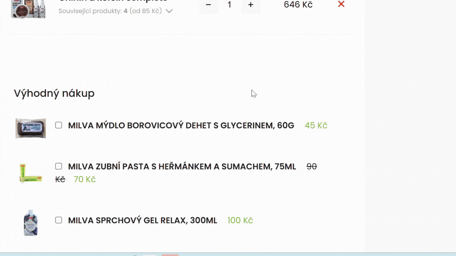 Na milva.shop právě běží speciální valentýnská akce. Ke své objednávce získáte dárek podle hodnoty nákupu — ne náhodně, ale podle vlastního výběru. V košíku se vám zobrazí konkrétní produkty, ze kterých si sami zvolíte ten, který chcete.