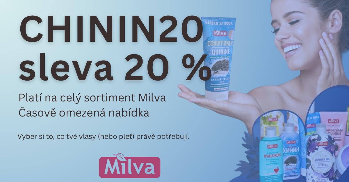 Sleva 20 % s kódem CHININ20. Platí na celý sortiment Milva. Doprava zdarma od 1600 Kč